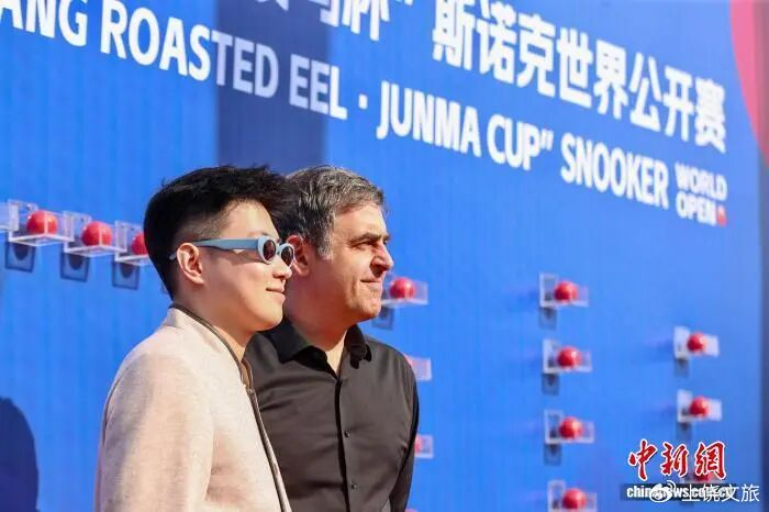 中国首位斯诺克世锦赛冠军赵心童(左)与英格兰名将奥沙利文在江西玉山亮相2026斯诺克世界公开赛红毯仪式。(资料图)刘力鑫 摄